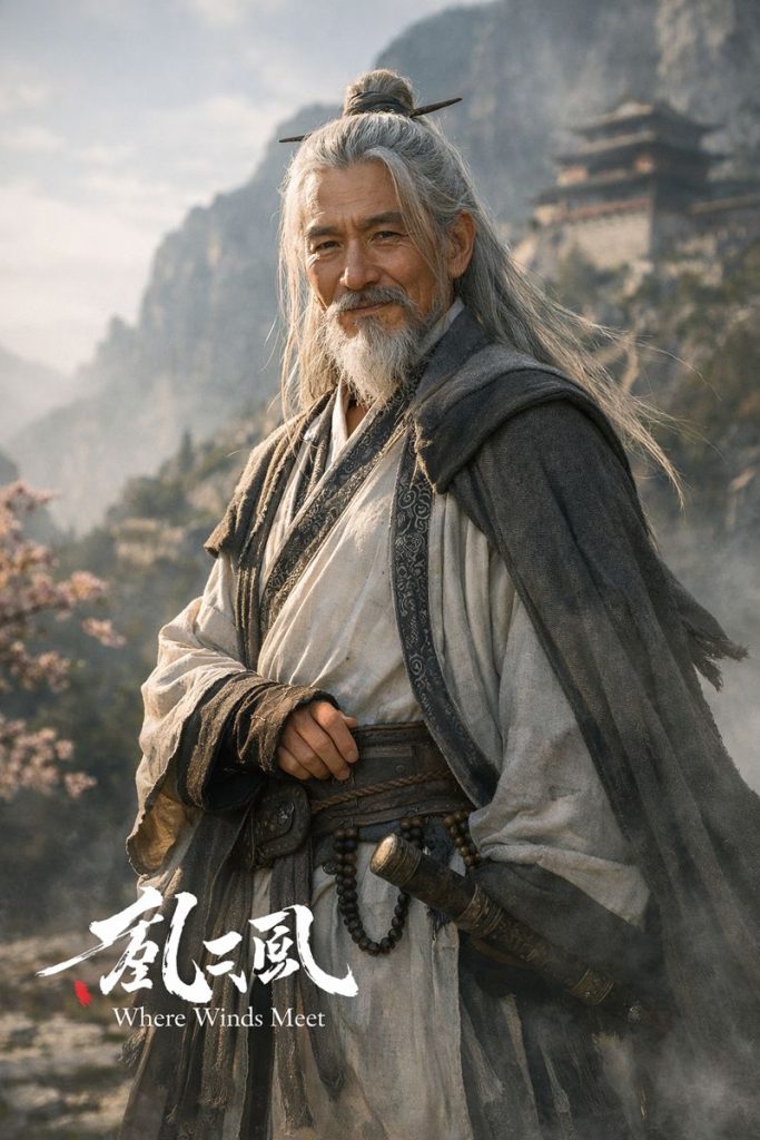 ถ้าให้ตีความ อาจารย์เกม Where Winds Meet ในเชิงธีม เขามักเป็นตัวแทนของ “ความนิ่ง” ท่ามกลางโลกที่หมุนเร็ว